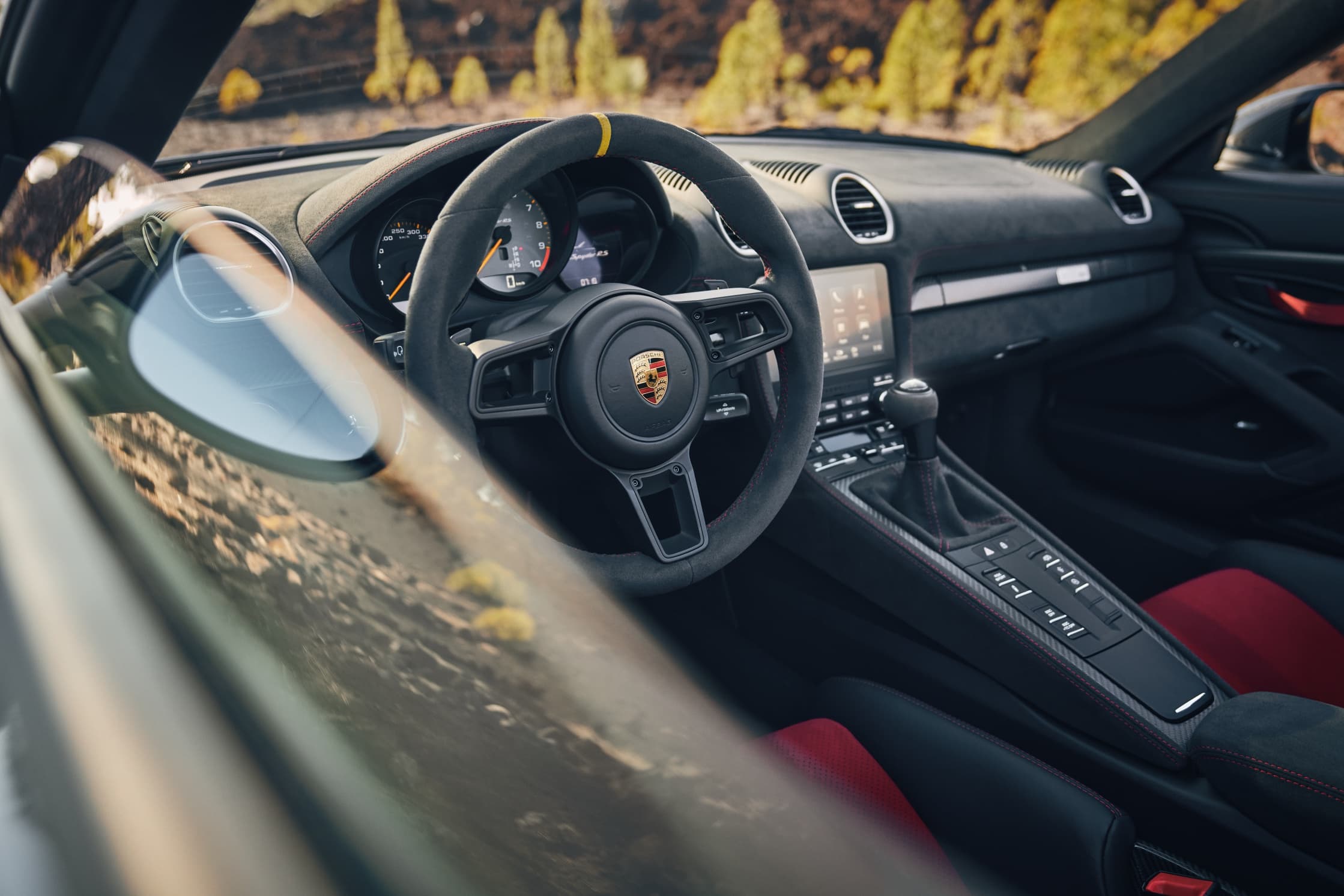 Slip inside the 718 Boxster where everything is placed strategically to enhance the driving pleasure. An ergonomic layout puts the focus on the driver with a clean design.